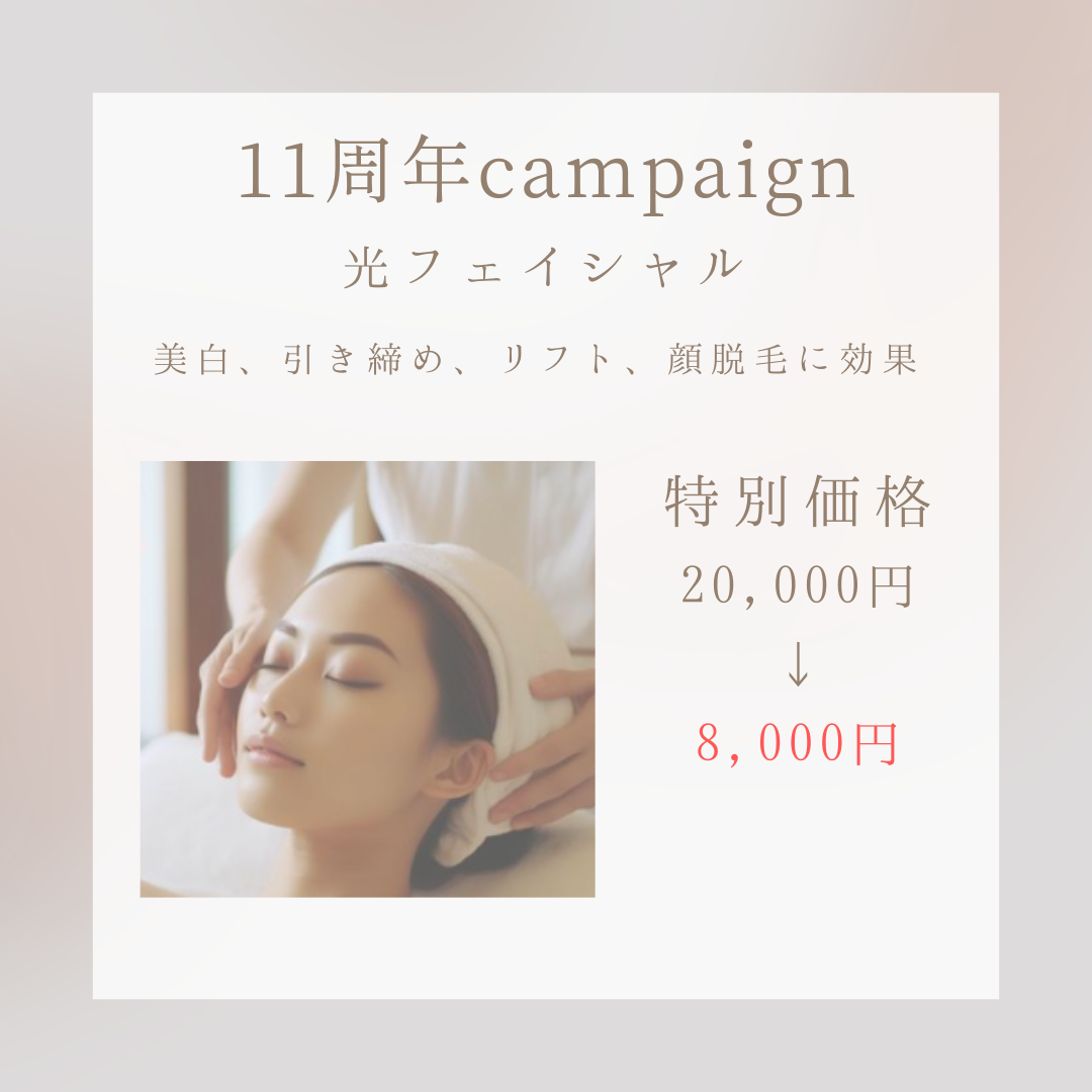 《光フェイシャル》美白、引き締め、リフト、顔脱毛に効果 20,000円 → 8,000円